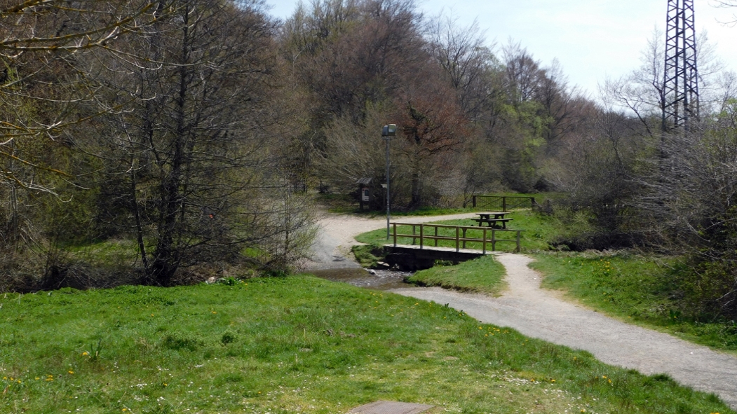 Der kleine Bach ist direkt hinter dem Parkplatz.