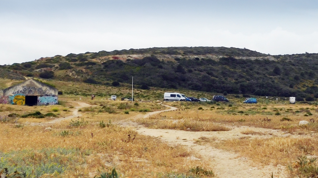 Die Zufahrtsstraße zum Praia das Cabanas Velhas zweigt kurz nach dem Ort Barrancão rechts ab und mündet auf einem großen kostenlosen Parkplatz.